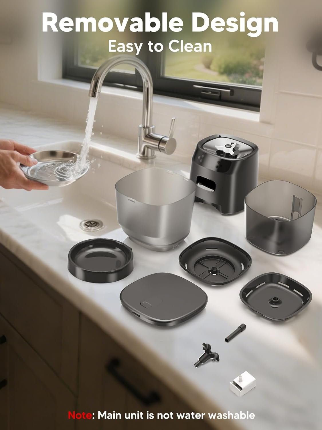 - FILTRACIÓN CIRCULANTE MÁS SALUDABLE: Con un sistema de triple filtración que purifica el agua y elimina los olores, esta fuente de agua para mascotas mantiene cada sorbo fresco. La bomba mejorada silenciosa ofrece dos modos (flor/fuente), transformando la hidratación en una experiencia atractiva para tus mascotas
