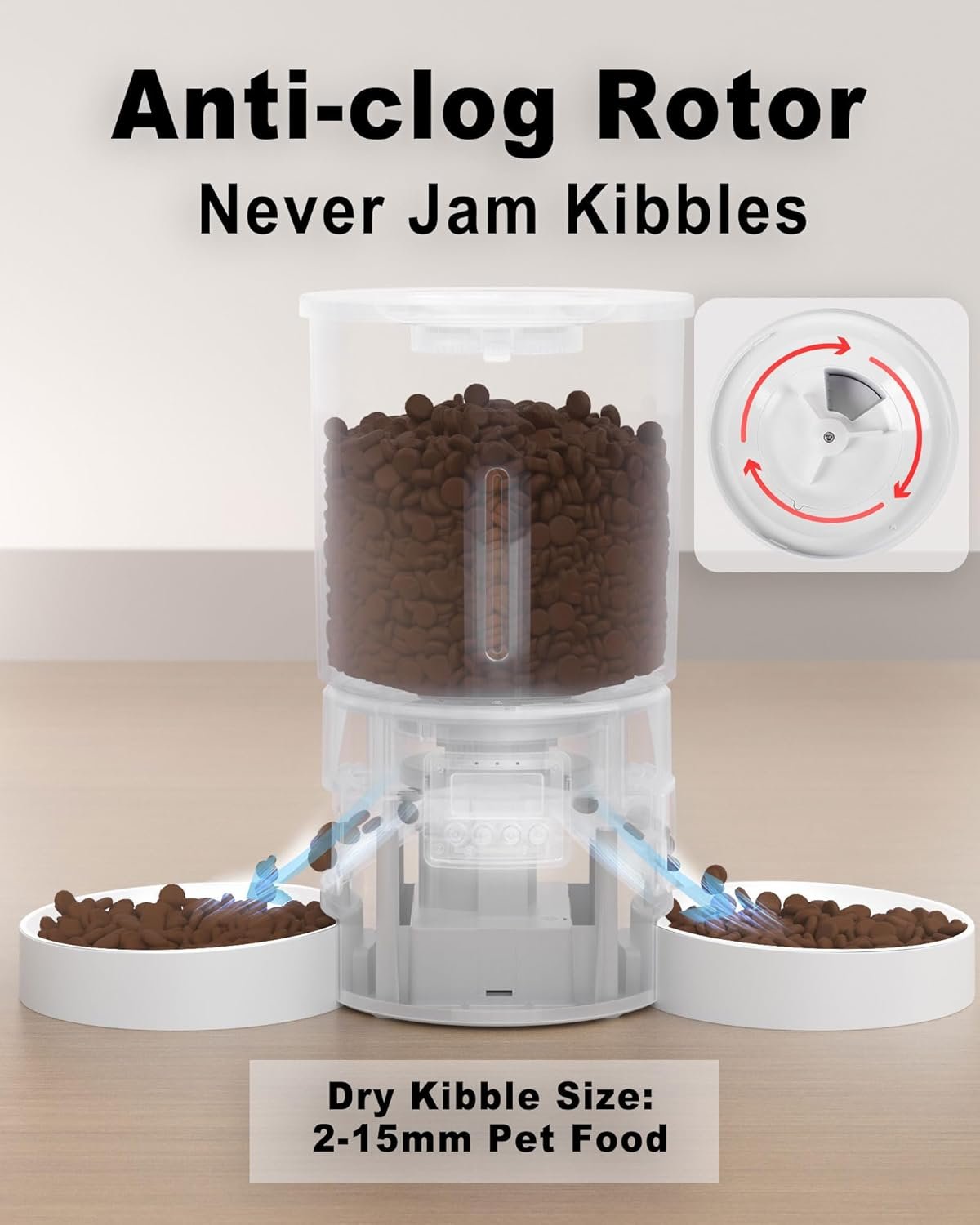 - Tranquilidad: este dispensador automático de alimentos para 2 mascotas con pantalla LCD integrada es muy fácil de configurar y programar, con rotor en forma de trébol, nunca atascas ni croquetas atascadas, puedes sentirte seguro cuando estás fuera de la ciudad o en viajes de días cortos. El alimentador automático de 2 gatos tiene una función de chip de memoria, manteniendo el tiempo y la programación a tiempo, no tendrás que restablecer de nuevo. Apto para croquetas de alimentos secos tamaño 2. 0.591 in