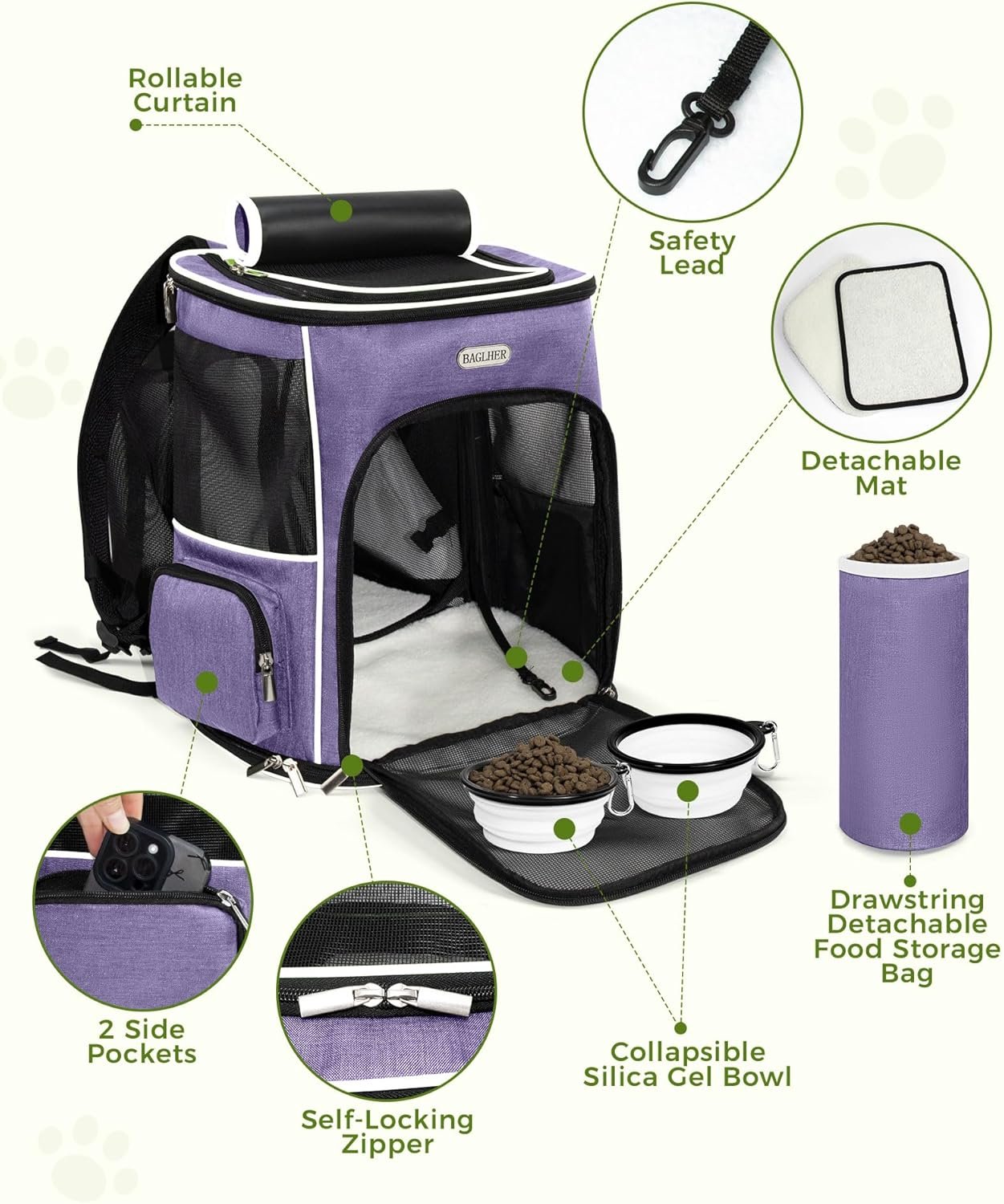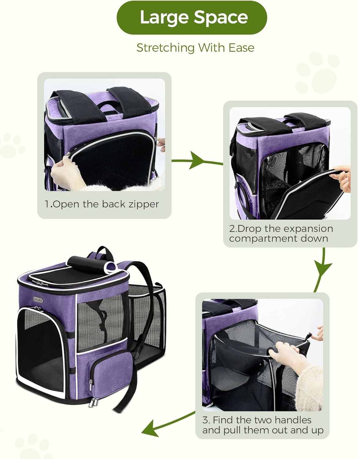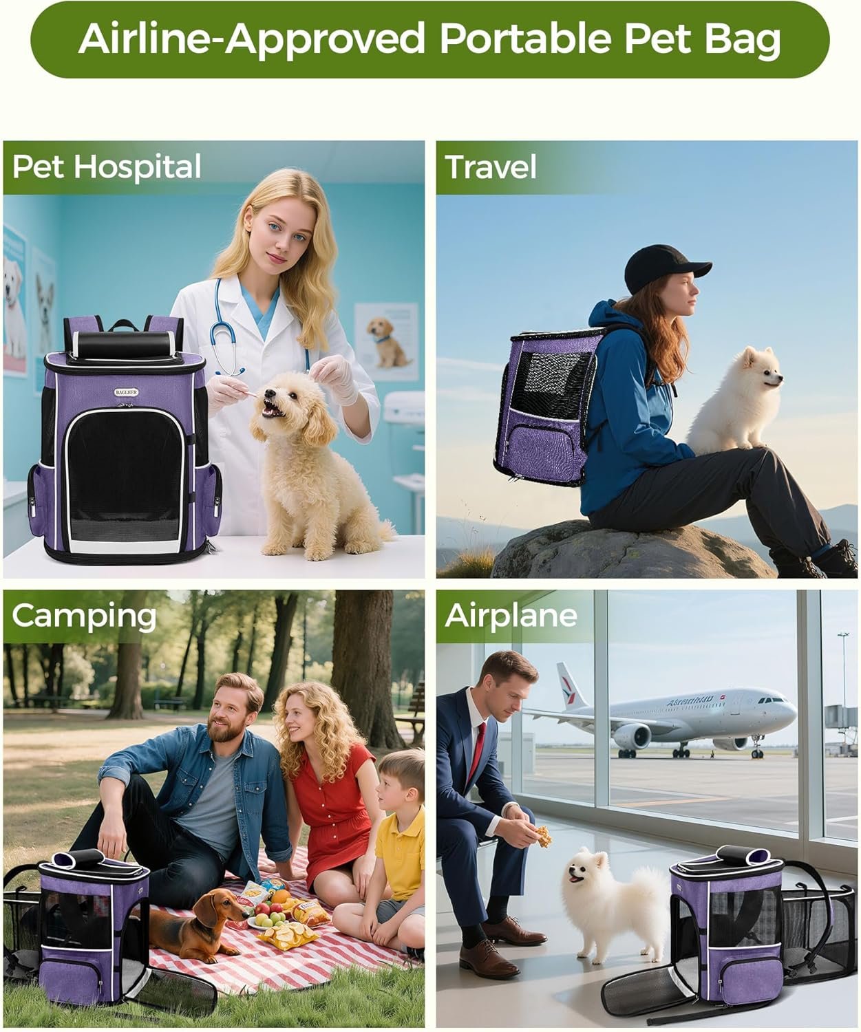 Bolsa de viaje retráctil para mascotas, mochila retráctil para mascotas (para todos los suministros de viaje para mascotas), mochila de viaje para mascotas, color morado
