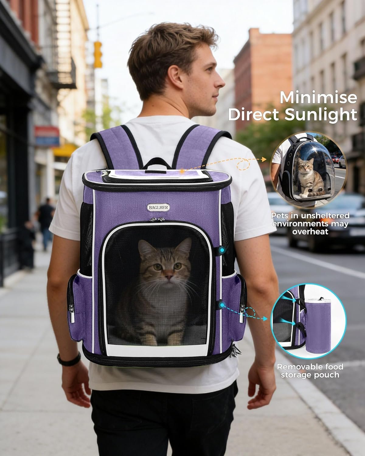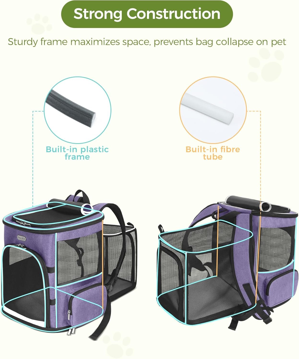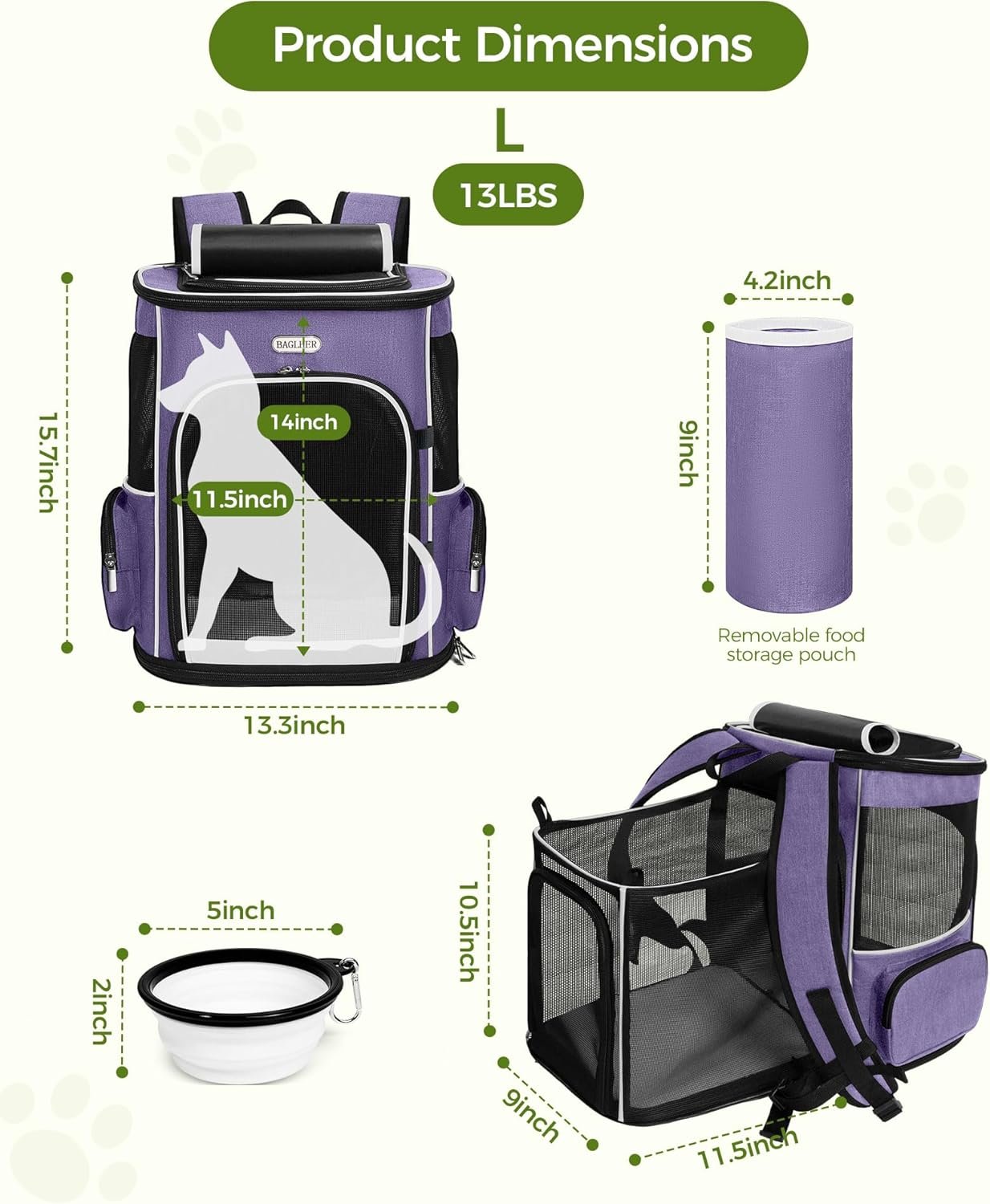 Bolsa de viaje retráctil para mascotas, mochila retráctil para mascotas (para todos los suministros de viaje para mascotas), mochila de viaje para mascotas, color morado